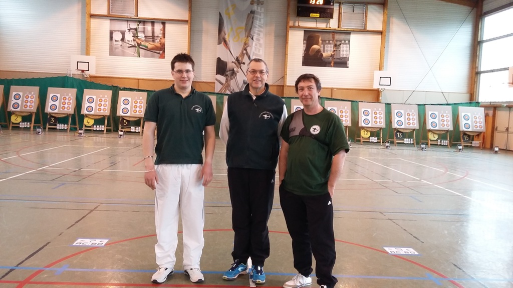 Aymeric (arc à poulies), Jean-François (arc classique) et Gérard (arc nu) ont tout fait pour réaliser le meilleur score possible et ont réussi à se placer 13e (sur 16) avec 1449 points.
